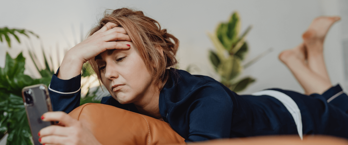 A woman researching her 596 credit score to see how to improve it.